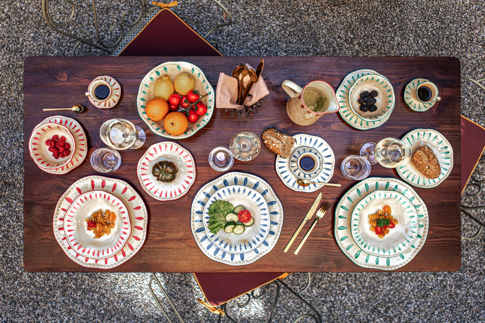 Set da 6 - Domitilla Verde Acqua Piatto Fondo - Stoneware, Ø22,5 cm
