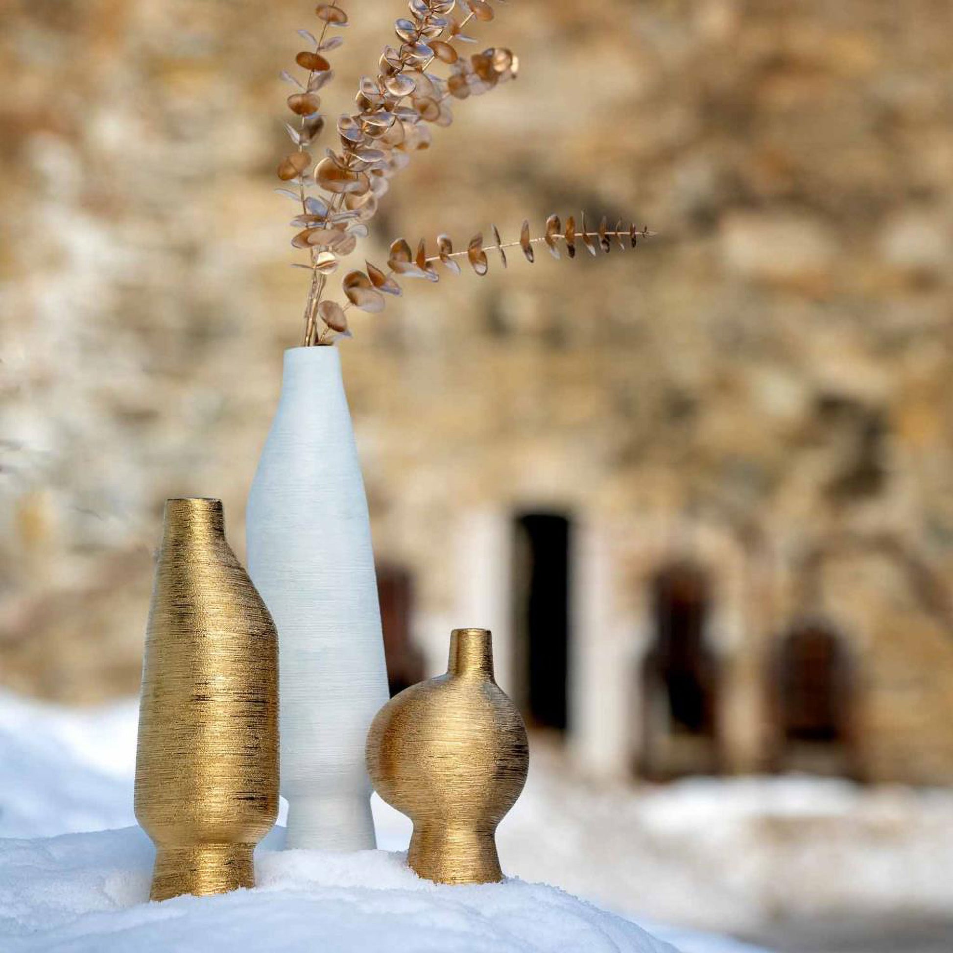 Decorative Vase M Gold, Eufemia - Ceramic, 10.5x10.5xH31 cm
