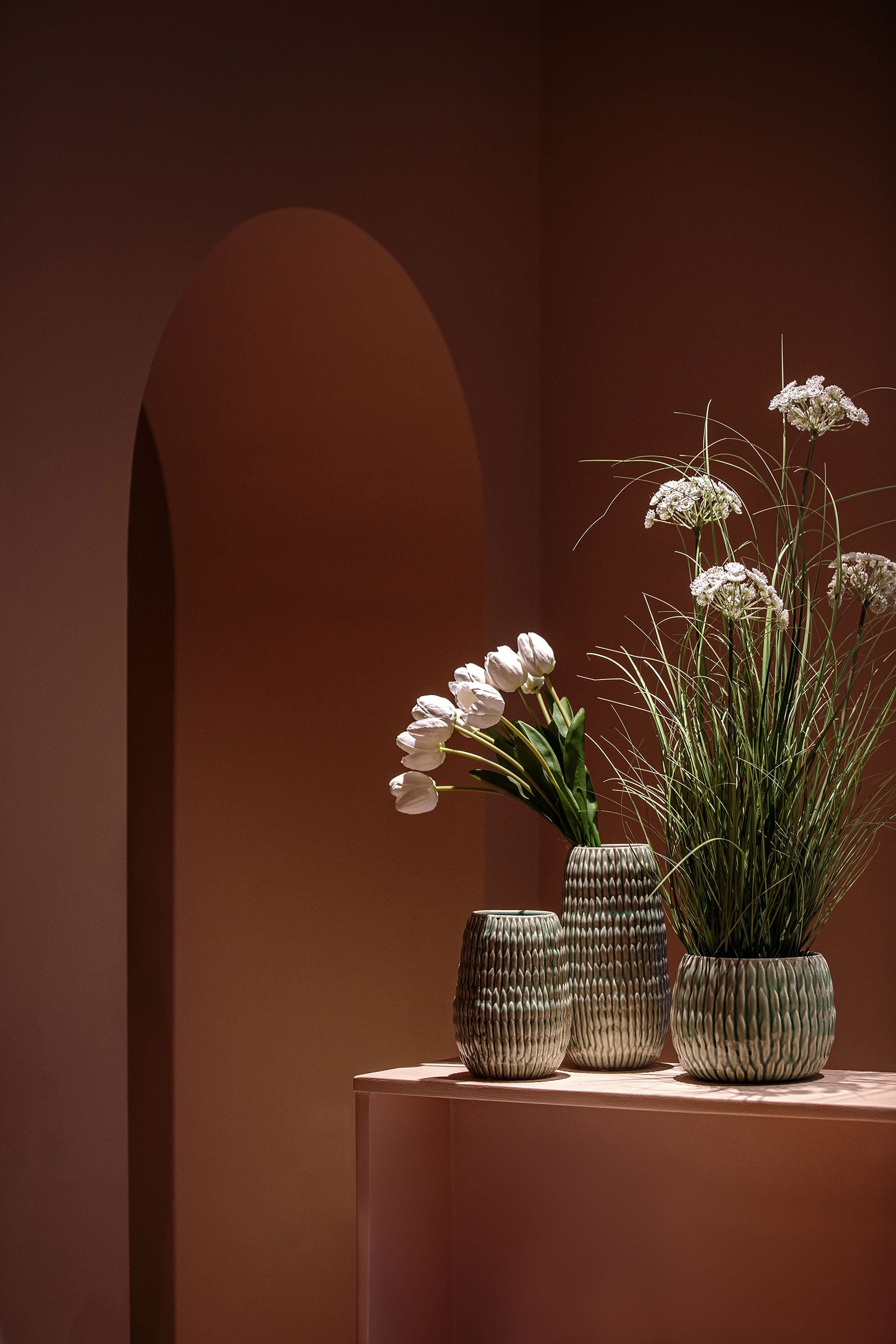 La collezione Agavina in smalto craquelè è pronta ad ospitare piante e fiori, per rispondere a un gusto sobrio ed elegante.