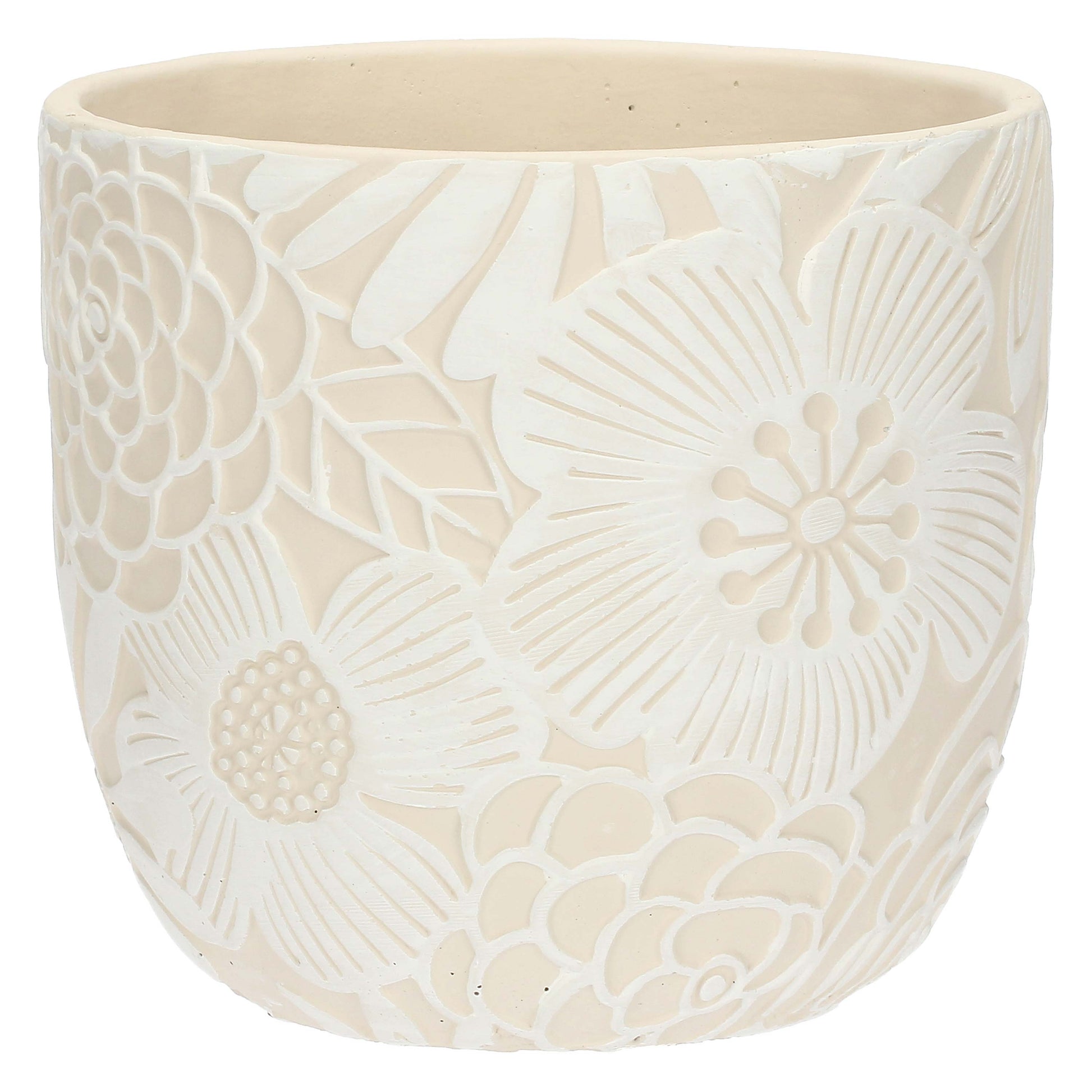 Cachepot in resina cementizia dal carattere contemporaneo, pensato per valorizzare piante e fioriture con uno stile materico.
