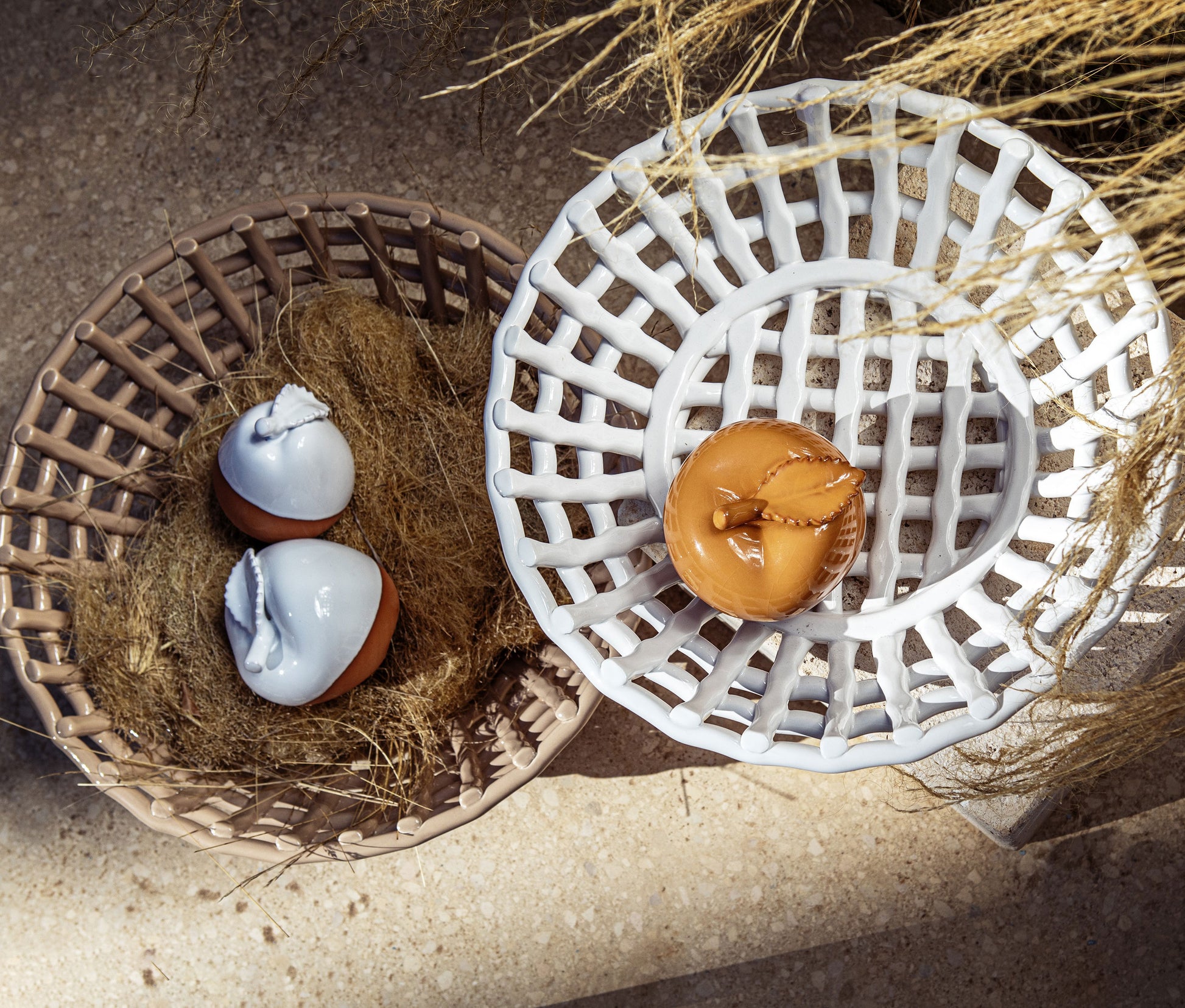 Gli iconici cesti ispirano forme dal design delicatamente traforato, votate all'artigianalità. Per ricreare in ogni stanza un'atmosfera genuina grazie a una collezione estremamente attuale e di tendenza.