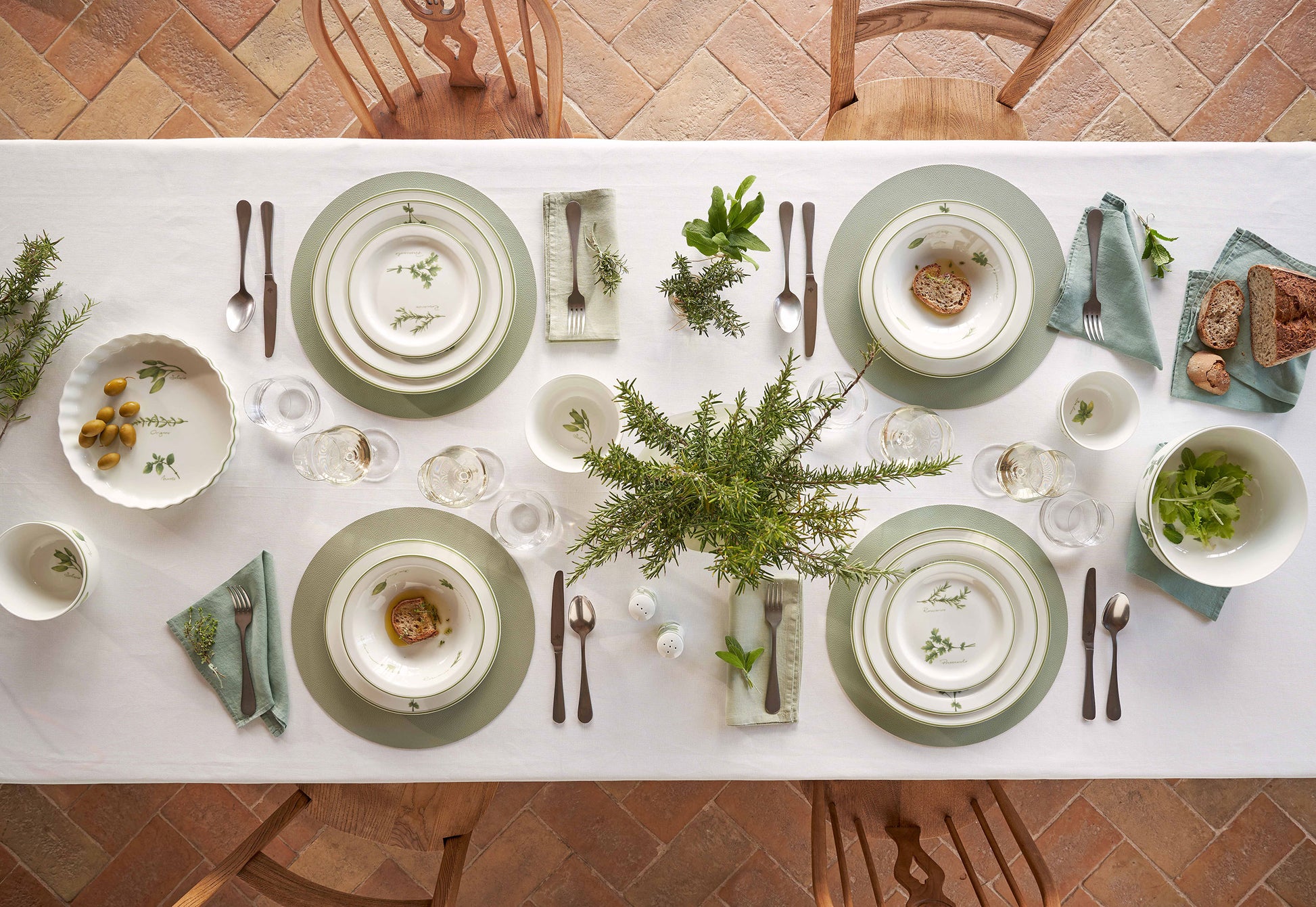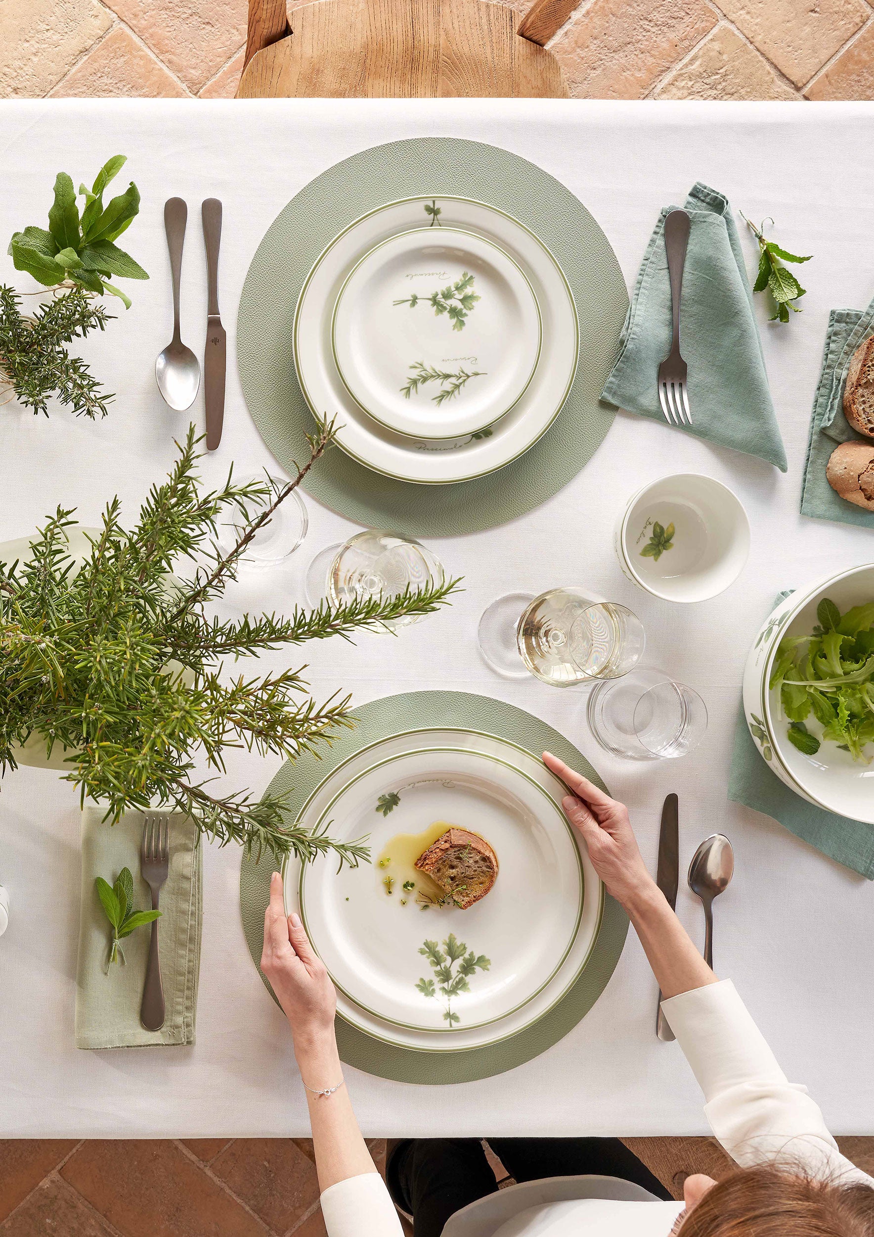 Il bianco candido della satin porcelain accoglie delicate erbe aromatiche in questa collezione indimenticabile, destinata al mondo della tavola e della cucina. Un decoro fatto a mano, all’insegna dell’artigianalità, sprigiona su ogni prodotto della collezione il profumo intenso di un orto rigoglioso.