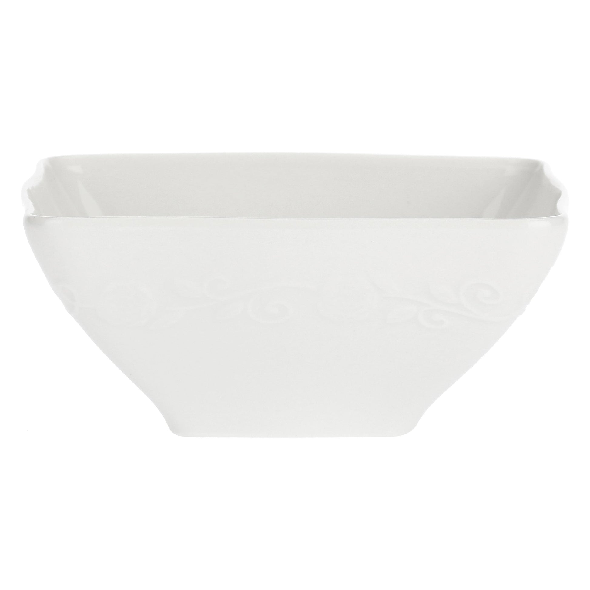 Un arabesque fiorito di rose e boccioli si rincorre sulle forme quadrate dei piatti, sui vassoi e sui complementi di Florentina, regalando uno speciale effetto materico, tutto da scoprire.
