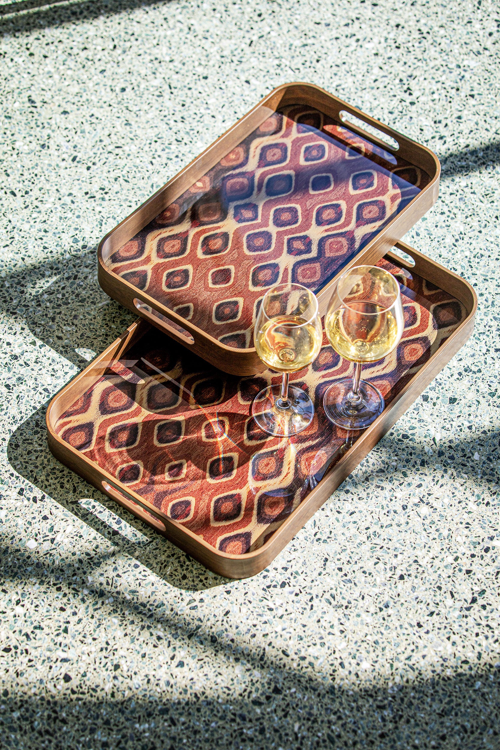 Set 2, Vassoi rettangolari Pavone, Galateo - Pvc, 27x42,5x4,5cm 32,5x50,7x4,5cm