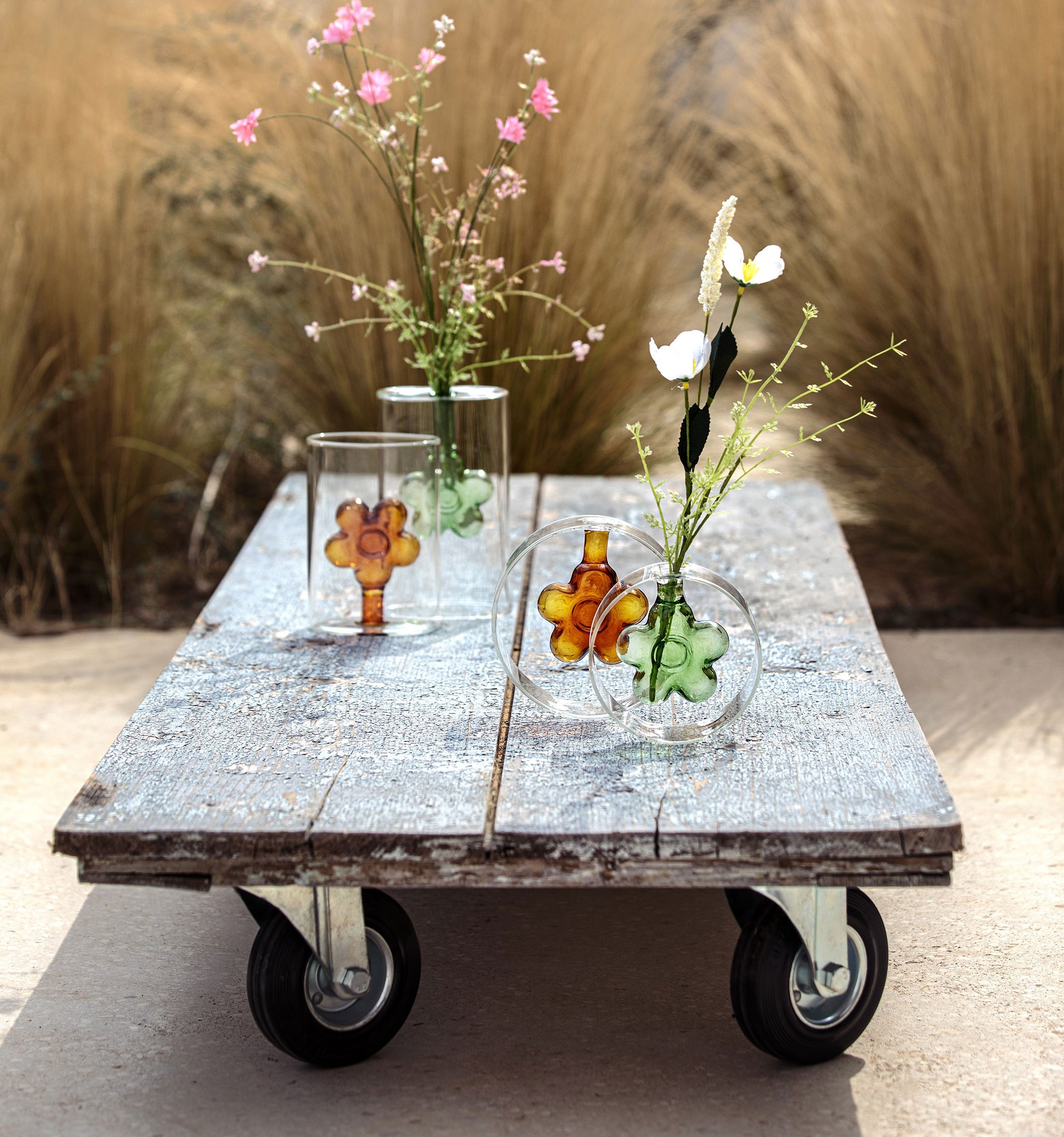 La collezione Infiore, fatta interamente a mano, presenta il prezioso dettaglio di fiori catturati nel vetro. Per una casa all’insegna della luce e della leggerezza.