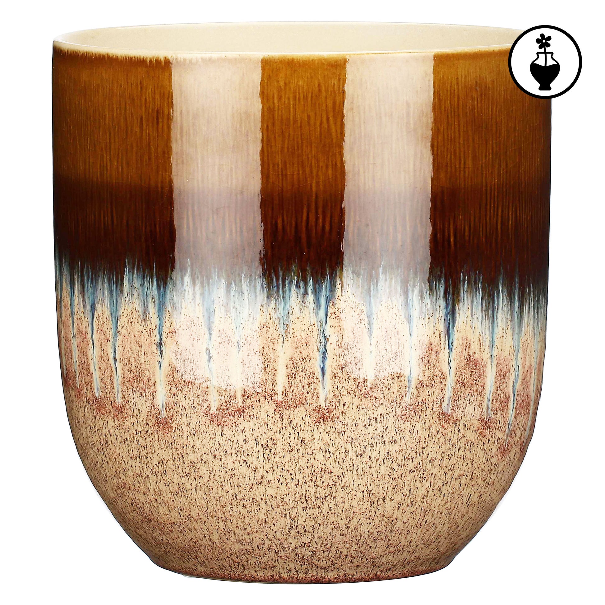 La luminosa ceramica ospita un incredibile incontro di colore con sfumature sorprendenti che sembrano riprodurre quelle della terraferma. Una collezione di cachepot in smalto reattivo dalla grande personalità.