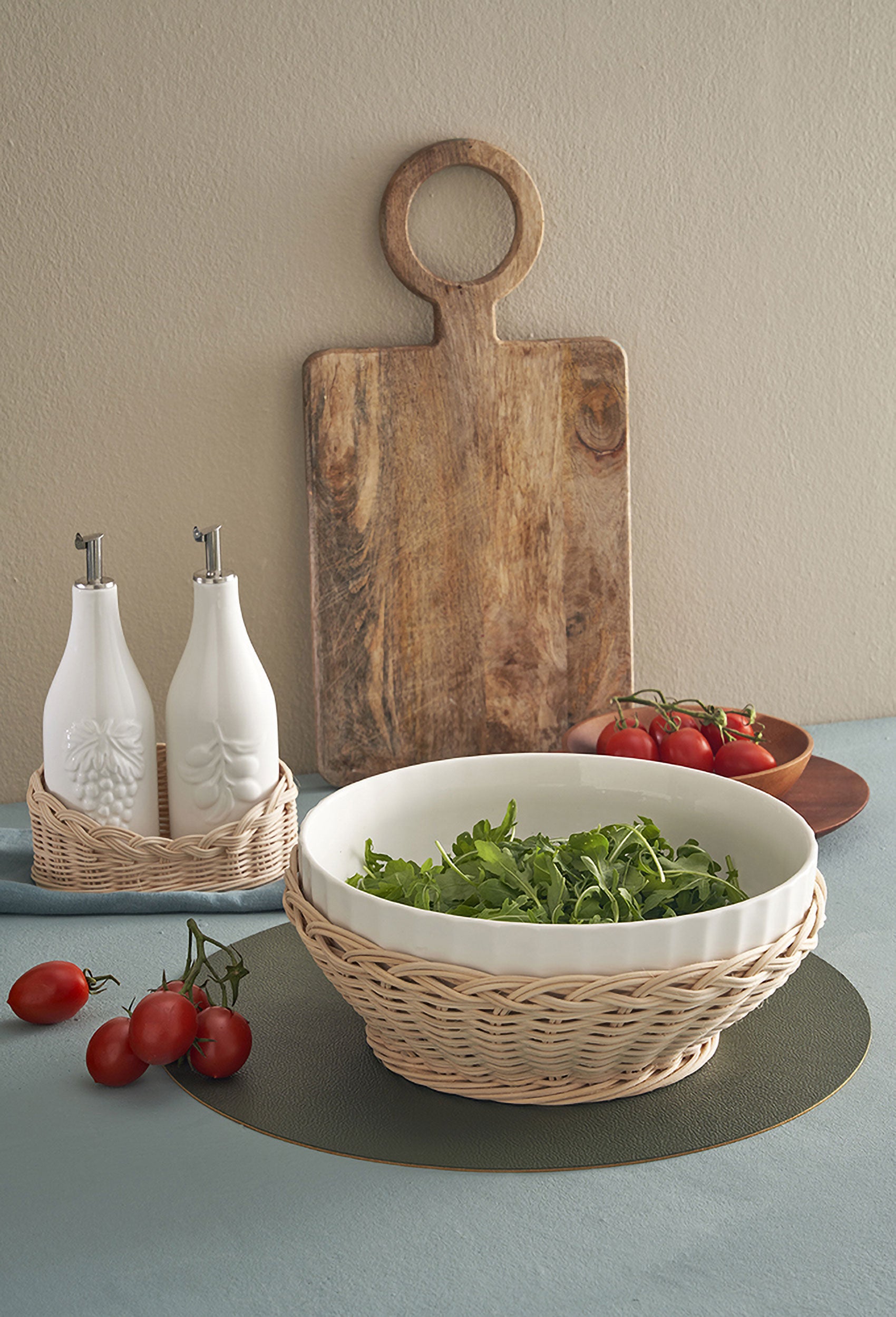 Pratici ed eleganti supporti in midollino per teglie, casseruole e accessori cucina. Una collezione dal tocco country, ispirata all'iconica tradizione rurale toscana.