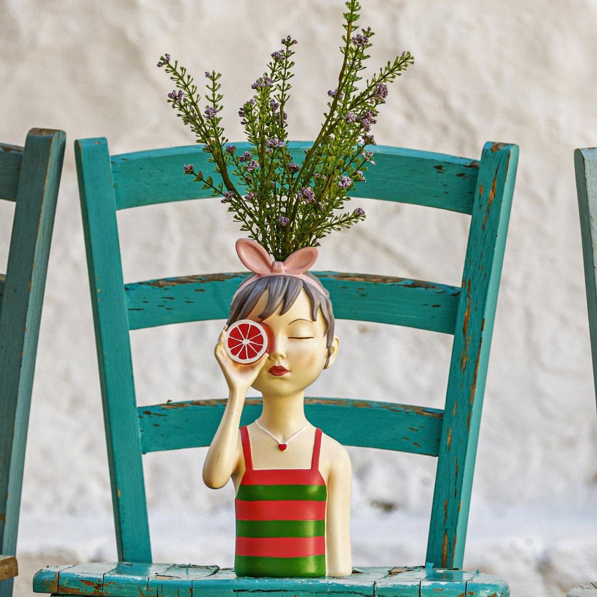 Fanciulle spensierate vestite di stile e colore. Vasi decorativi delicati per un tocco gentile in casa.