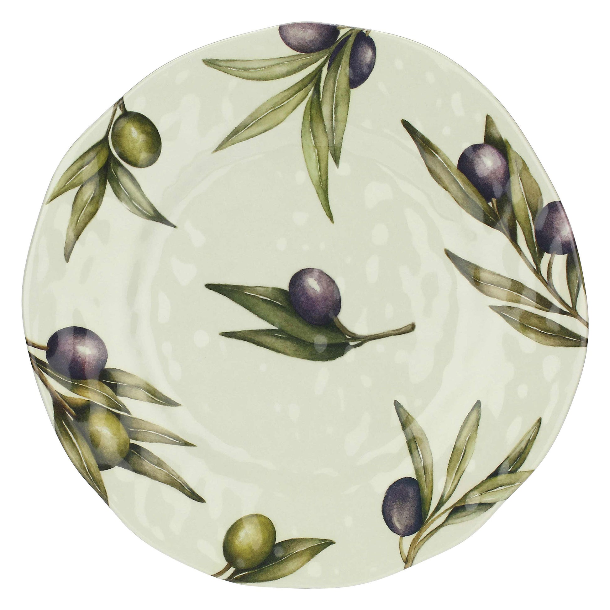 Un acquerello realizzato a mano porta in tavola tutto il sapore iconico del Mediterraneo. Foglie e frutti d'ulivo abbracciano ogni creazione in melamina, dando luogo ad un ritmo sempreverde. Per una tavola distintiva, da vivere anche in outdoor.