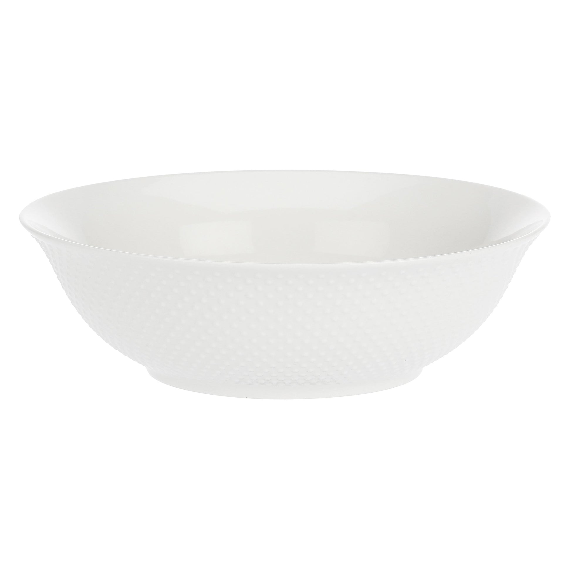 Il colore passepartout per eccellenza - il bianco - si abbina a un delicatissimo decoro a rilievo. Un motivo puntinato che orna ogni prodotto della collezione con indicibile grazia. Per una tavola in grado di richiamare bellezza ad ogni stagione.