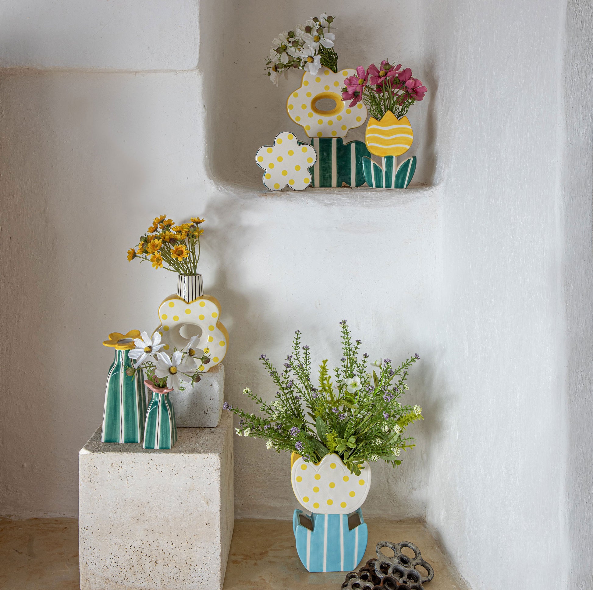 Set da 3, Doppio Vaso Margherita, Verdecampo - Dolomite, 19x7x26,3 cm